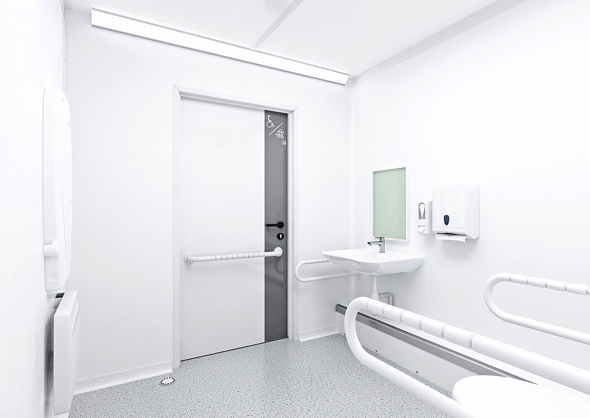 Inside, the container also caters to special needs, with facilities for the disabled as well as a baby changing table. In addition, all compartments are fitted with water-saving tapware, benefiting both the environment and your purse.