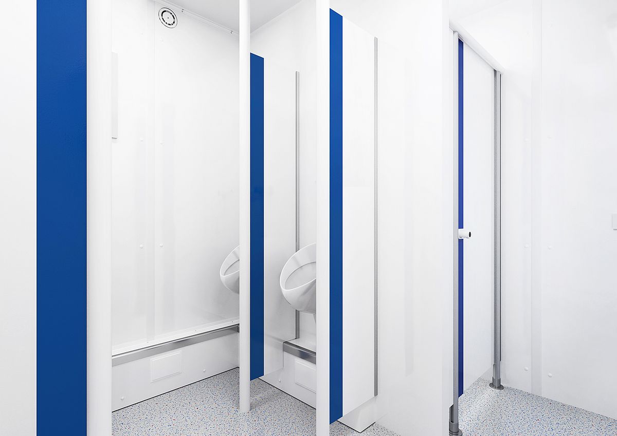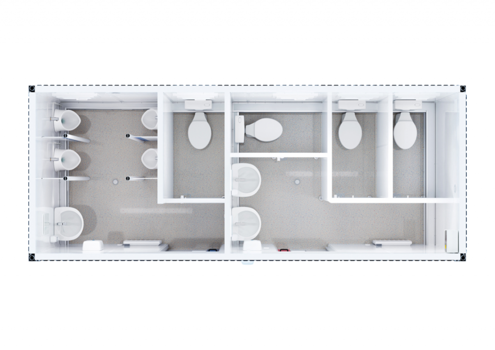 Our Basic Line W/M sanitary containers have a surprisingly spacious feel. 15 m² in size, every square centimeter has been utilized to the maximum possible degree. Thanks to their ideal layout, these sanitary containers can be used by up to eight people simultaneously.